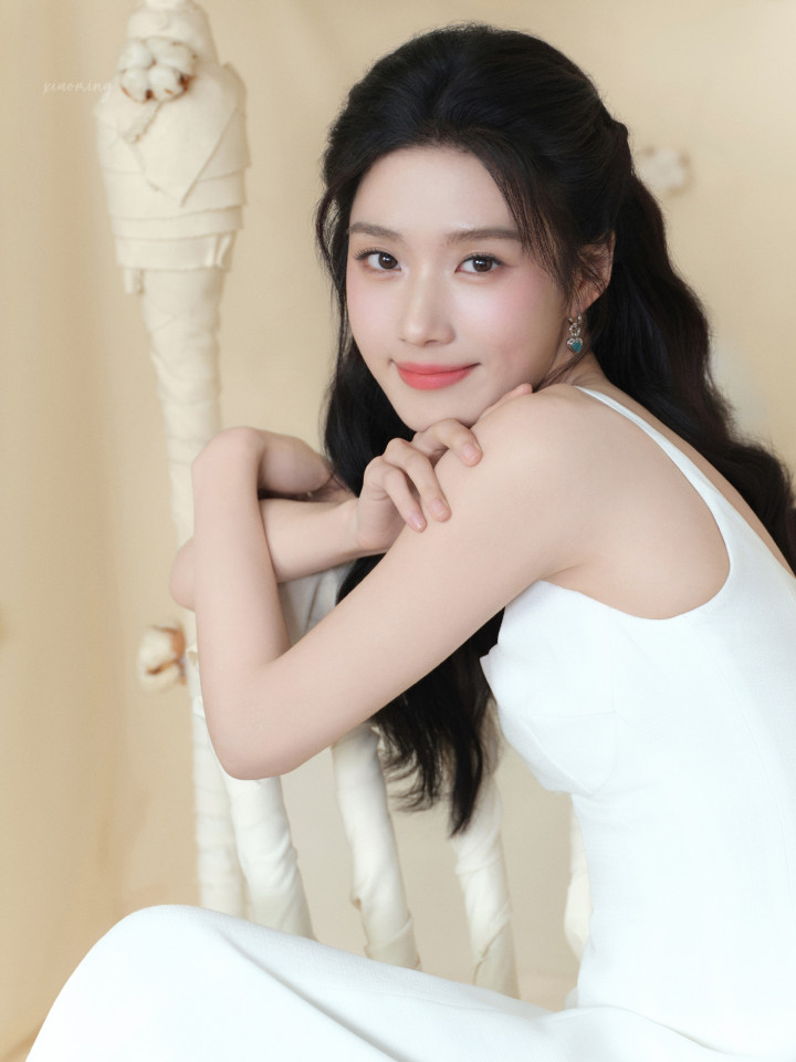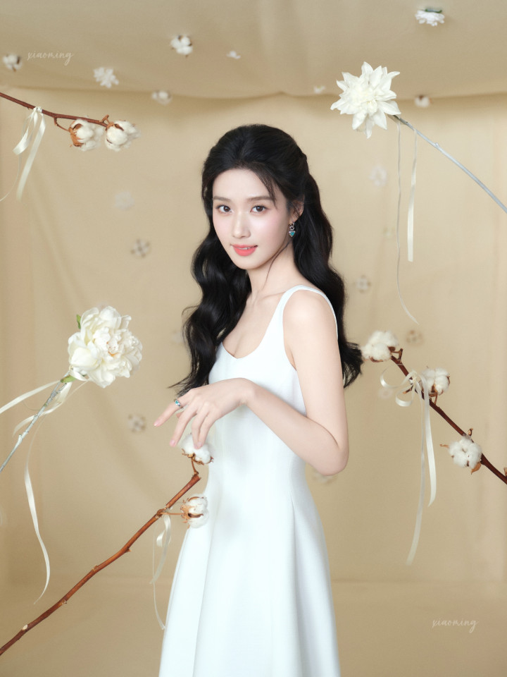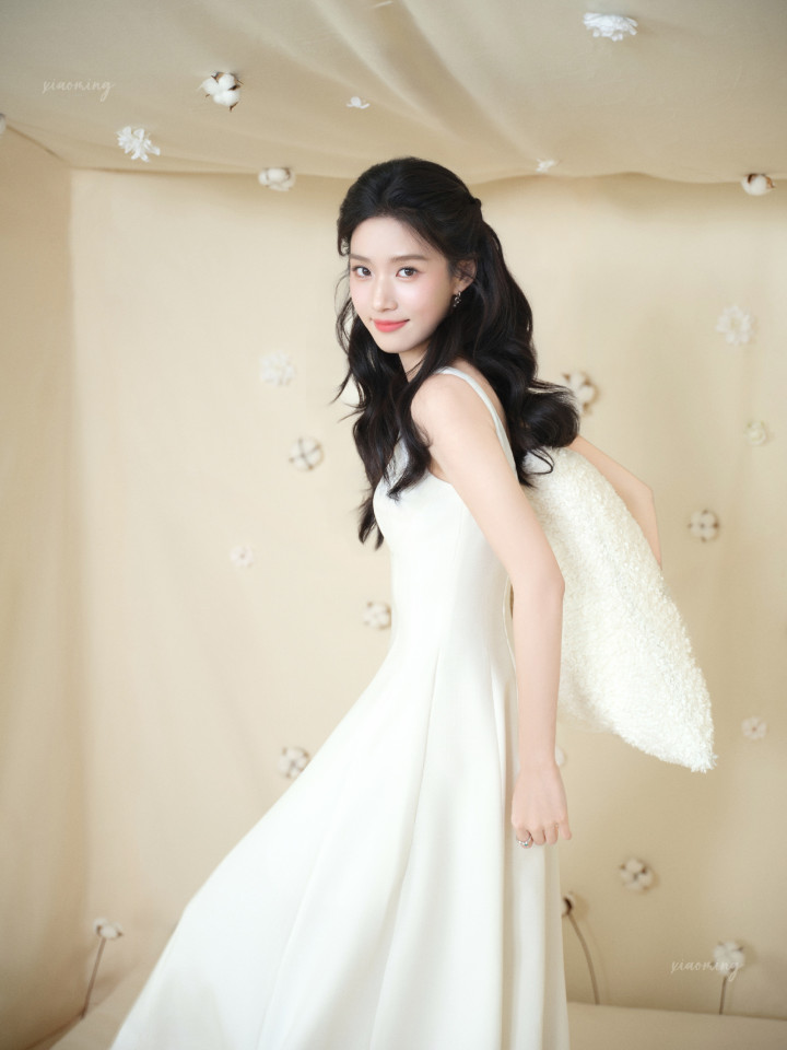 卢昱晓明明是纯白清甜,偏巧裙摆漾起温文弧度,阳光下灵动又调治