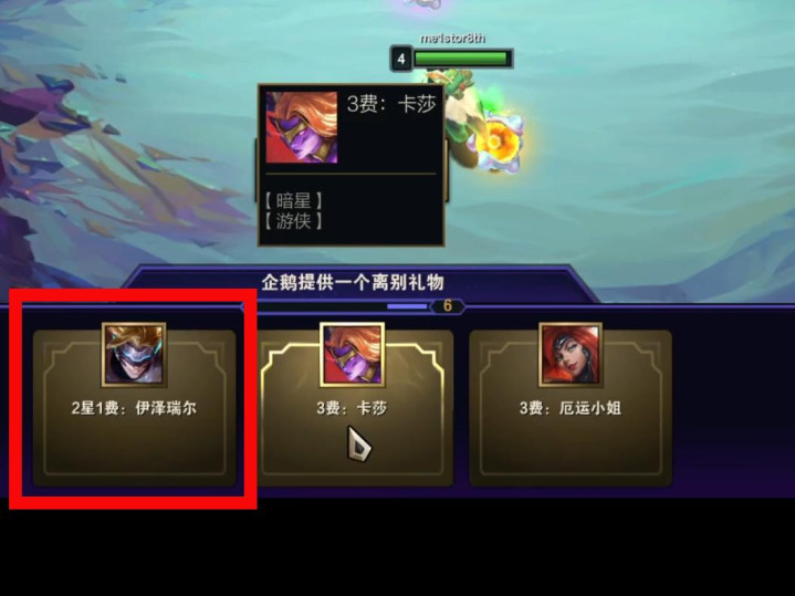 除了选神,企鹅神在选秀阶段也会给你棋子。大家预防:这局我走了连败,我会有两星一费卡,还会有三费卡;