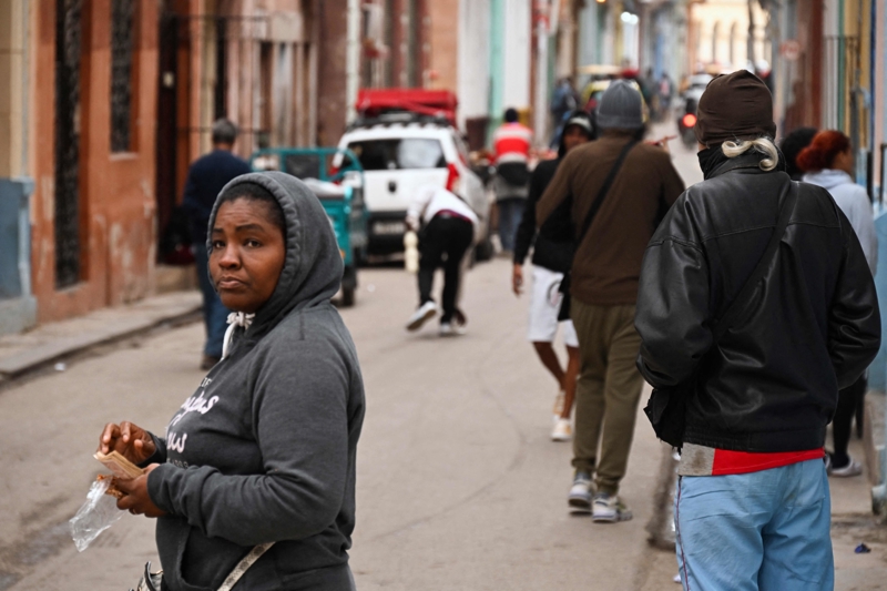 2月3日,在古巴皆门哈瓦那,别称女子衣服长袖外衣站在街头。 新华社/法新