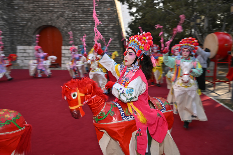 2月4日,跑竹马扮演。 新华社记者 李鑫 摄