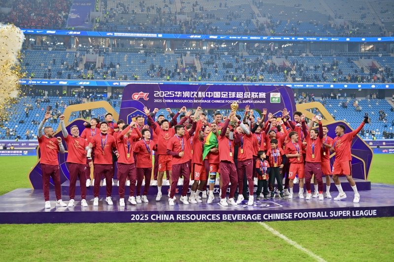 2025年11月22日,上海海港队在授奖典礼上庆祝夺冠。\n 当日,在辽宁大连举行的2025赛季中国足球协会超等联赛第30轮比赛中,上海海港队客场1比0顺服大连英博海发队,取得本赛季中超联赛冠军。\n 新华社记者 吴青昊 摄