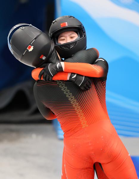2022年2月19日,中国选手应清和杜佳妮赛后相拥。\n 当日,北京2022年冬奥会女子双东说念主雪车比赛在国度雪车雪橇中心举行。\n 新华社记者 姚剑锋 摄