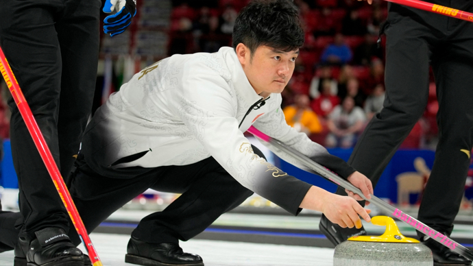 新华社像片,好意思联,2025年4月7日\n 4月6日,中国队选手徐晓明(右)、费学清在比赛后执手。\n 当日,在加拿大穆斯乔举行的2025年世界须眉冰壶锦标赛铜牌争夺战中,中国队2比11不敌加拿大队,无缘铜牌。\n 新华社/好意思联