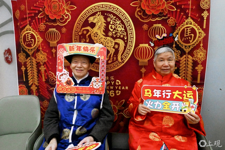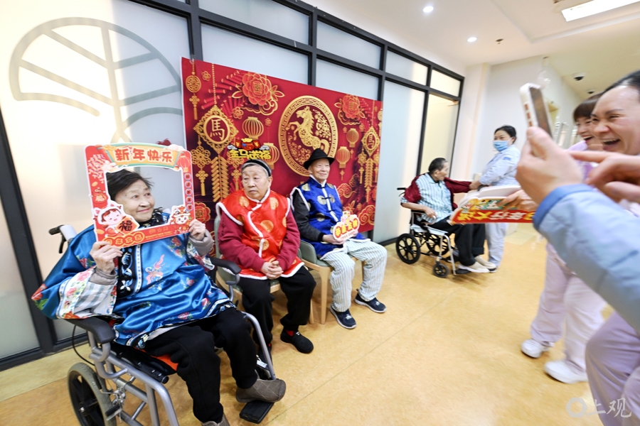 在“马年祯祥照”拍照区,志愿者为老东说念主换上唐装、领巾和喜庆的红马甲,照相师耐烦调遣角度,轻声率领老东说念主昂首浅笑。“新年写照是咱们的传统技俩,本年还是是第四年了。”吕锐先容,从起头租赁红一稔,到自后缓缓添置汉服、唐装,病院的新春服装越来越全。