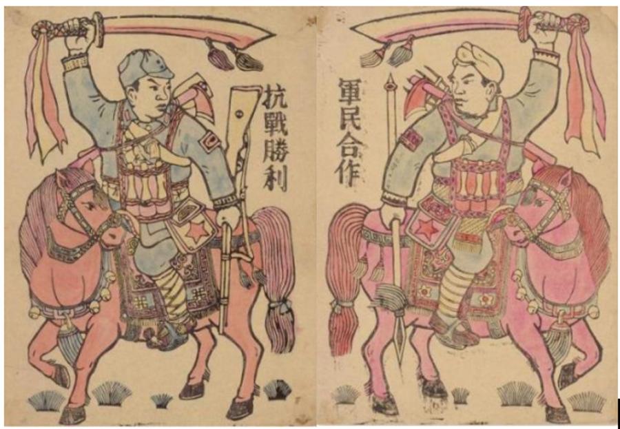 木版年画《军民合作 抗征服利》