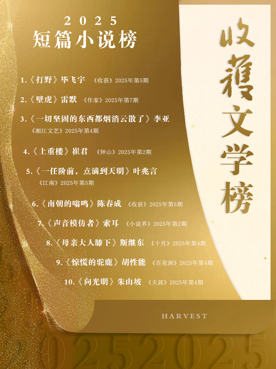 1.《打野》,毕飞宇,《成绩》2025年第5期