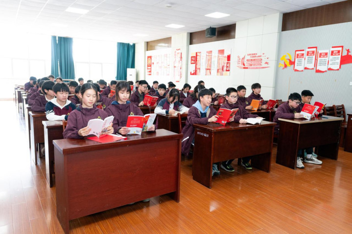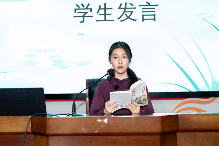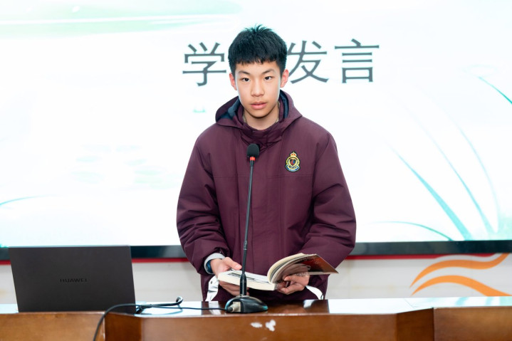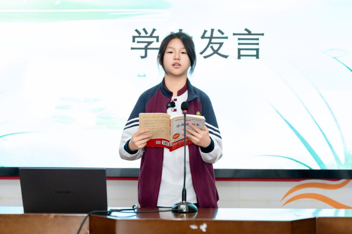 八年纪的张艺凡,巨镓恺、王嘉成三位同学代表八年纪作念了富饶深度的共享,为后头共享的同学打了个样。其中,有同学共享了《红岩》中江姐面临敌东说念主严刑强硬抵御的故事:“竹签是竹子作念的,共产党员的意识是钢铁铸成的。”有同学论说了方志敏义士在狱中写下《可儿的中国》,憧憬未来中国的光明图景。还有同学朗诵了赵一曼义士留给女儿的遗书:“母亲毋庸口若悬河来栽种你,就用执行来栽种你。”