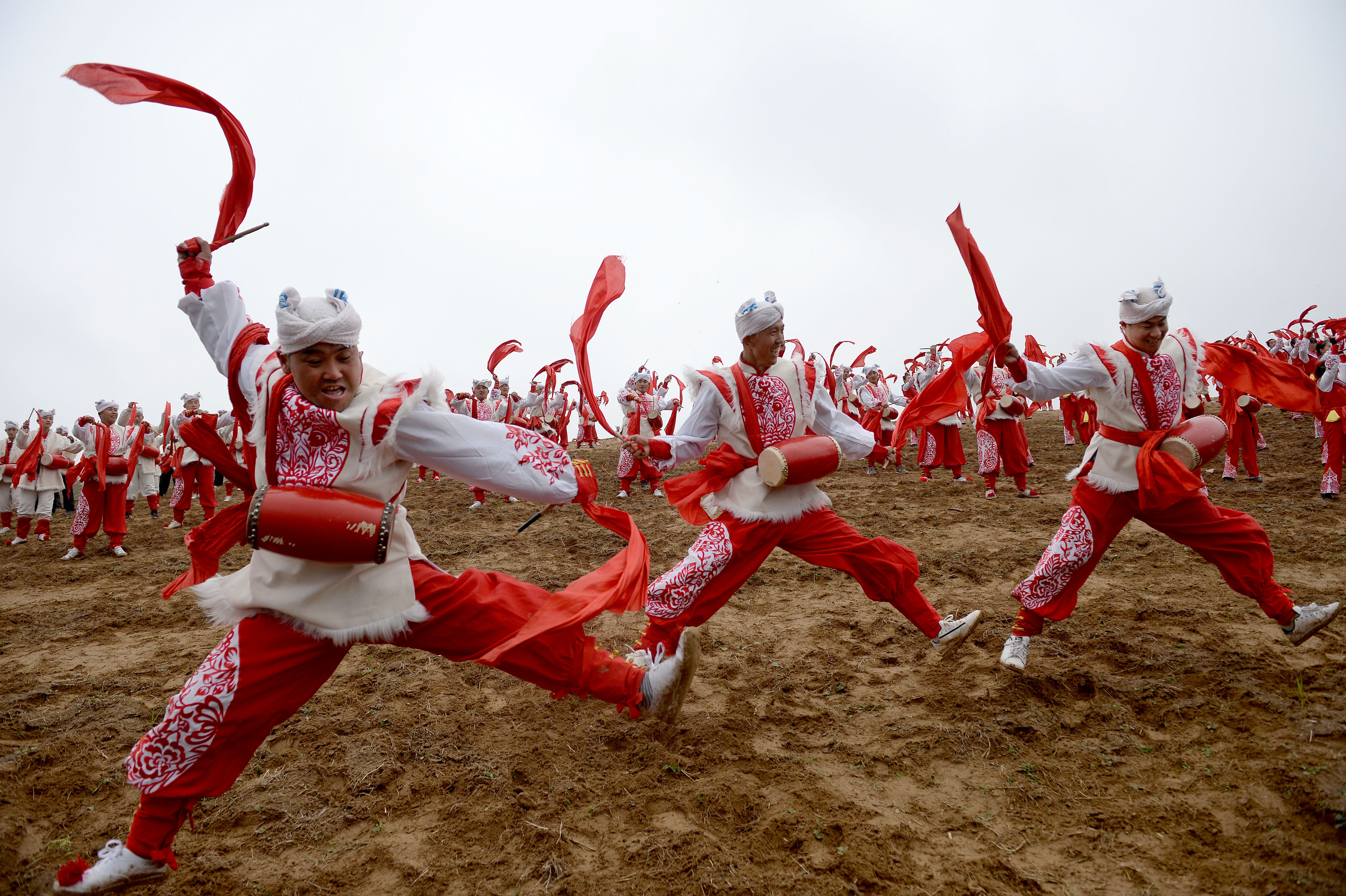 腰饱读手在陕西省延安市安塞区南沟村进行一场平地腰饱读献技。新华社记者 刘潇 摄