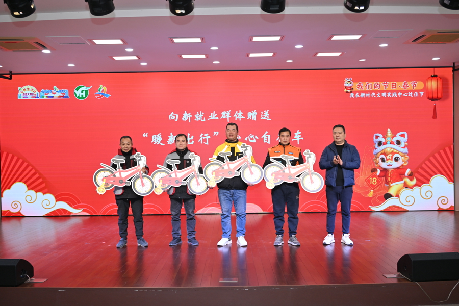 行为现场还为新服务群体代表赈济了“暖新出行”爱心自行车,行为本领,殷行街谈还将组织书道家和志愿者走进社区,将新春道喜送至辖区百余户家庭,传递这份祯祥和幸福。