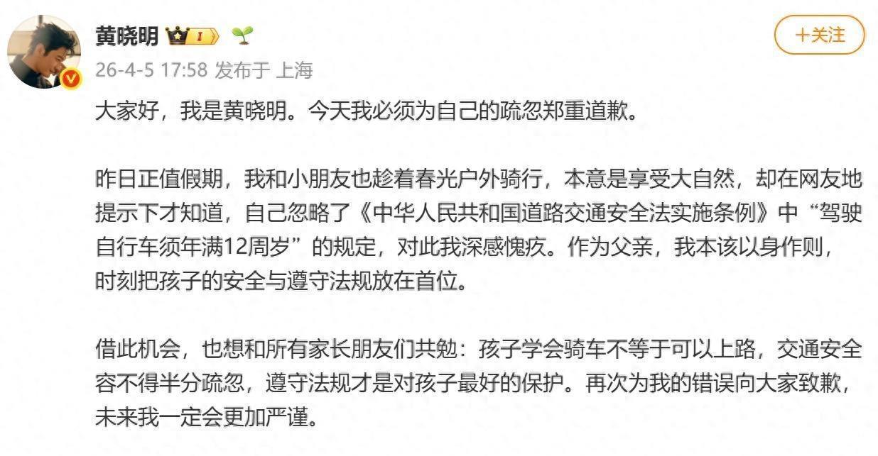 除了他们按纳不住想言语,文娱圈也风云络续,黄晓明发了个说念歉。