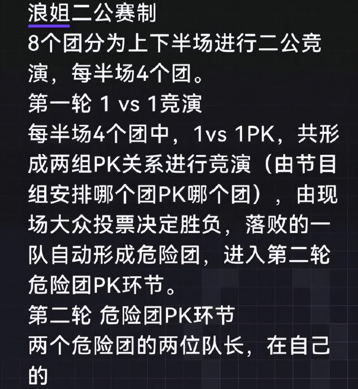 从传出的音书上看,第二轮舞台公演依旧分为高下半场进行,每个半场分四个团,第一轮给与1对1的赛制,落败的团会自动成为危急团,她们要插足第二轮对决。