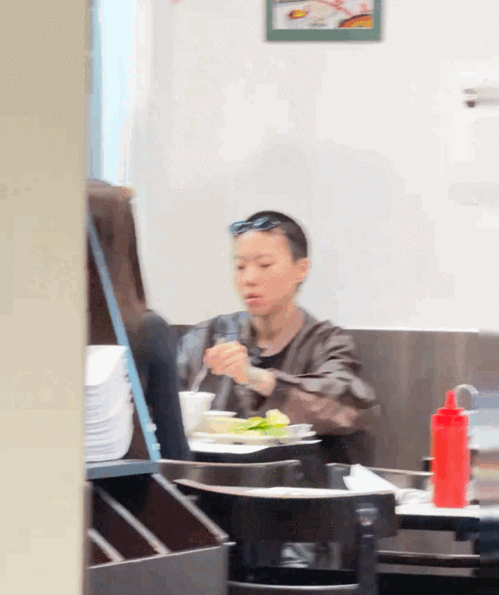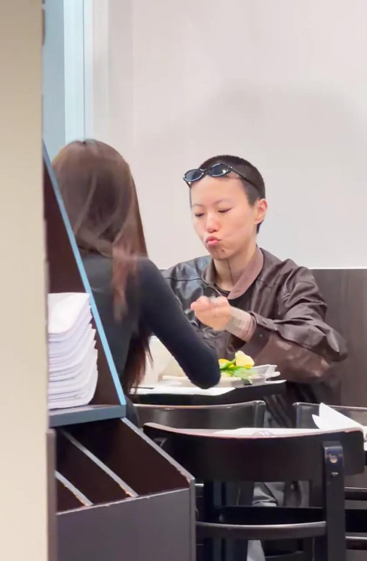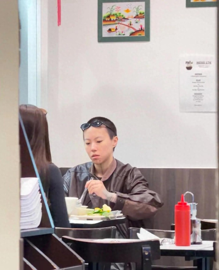 世界杯官网 窦靖童在巴黎吃越南菜, 她剃了短发很帅, 她对面坐着的疑似宋妍霏